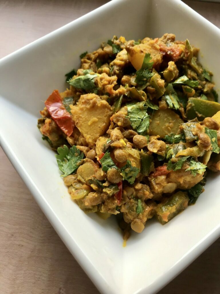 Although I usually make this dish with red lentils, I substituted for canned lentils I found in my pantry, which worked just as well!