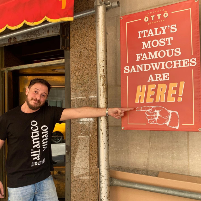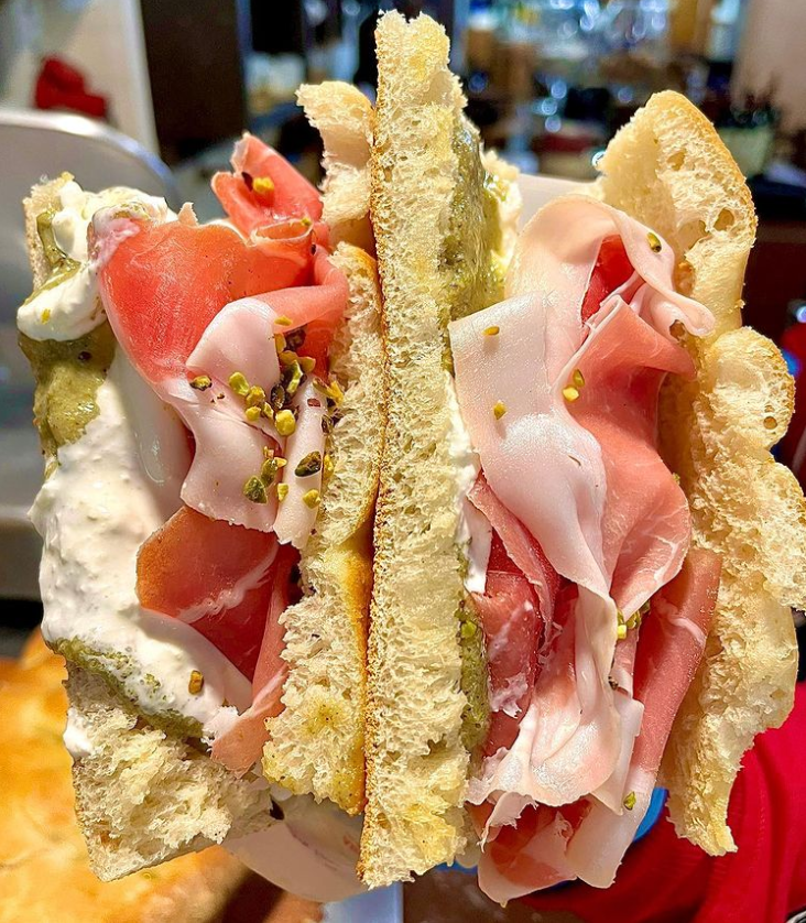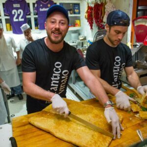 Within a few years, Tommaso Mazzanti brought his restaurant All’antico Vinaio from being a reference point for the workers of the historic center of Florence to being a reference point for tourists from all over the world. The Schiacciata la Favolosa, prepared by him with Sbriciolona (typical Florentine salami), Pecorino cream made by him, Artichoke cream and fried eggplant has been defined by the main magazines as among the best sandwiches in the world.