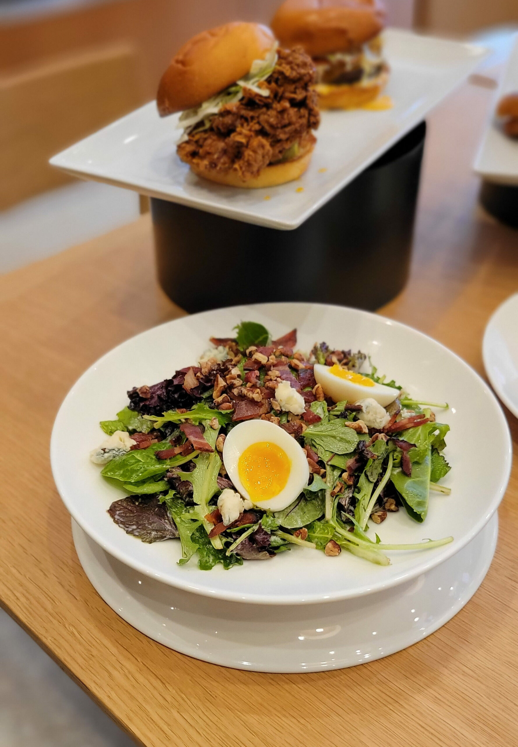 We’ve partnered with Mike’s Hot Honey to create our Fried Chicken Sandwich and Stumptown Coffee Roasters is our coffee provider.