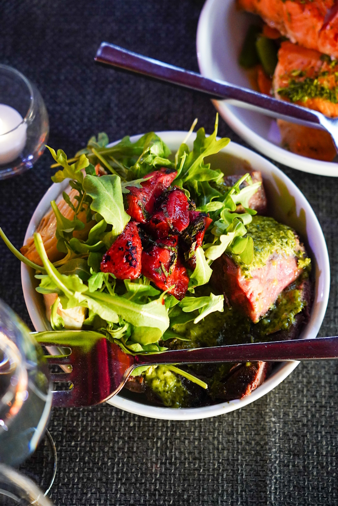 Morgan Golumbuk, Senior Event Director, collaborated with the OHNY team and GP Culinary Director Andrew Smith to curate a menu that would be delicious served at room temperature. We developed two brand-new seasonal protein dishes for the occasion and engaged with partner Eat Offbeat to provide a couple of their incredibly delicious recipes (that just happened to be vegan!): their Chickpea Salad and their Iraqi Sumac Salad.