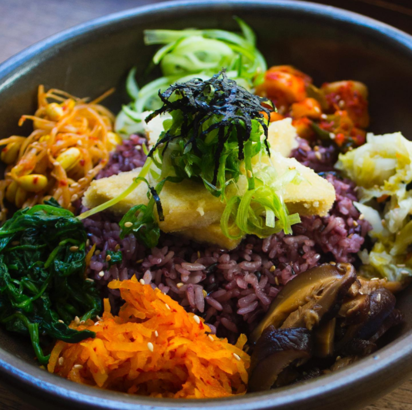 Seasonal Vegetables (Beansprouts, Spinach, Pickled Daikon, Cucumber, Shiitake Mushrooms, Daikon Kimchi), Scallions, Nori, Housemade Gochujang Sauce