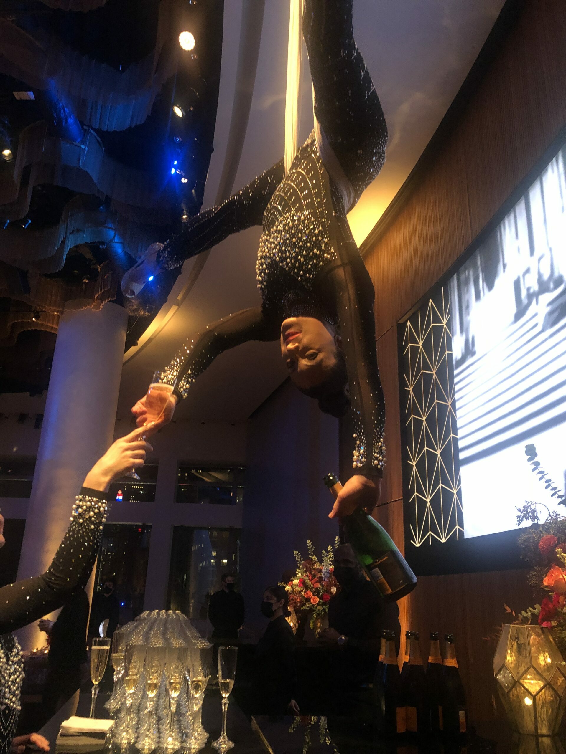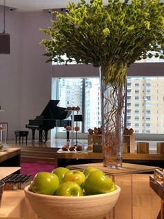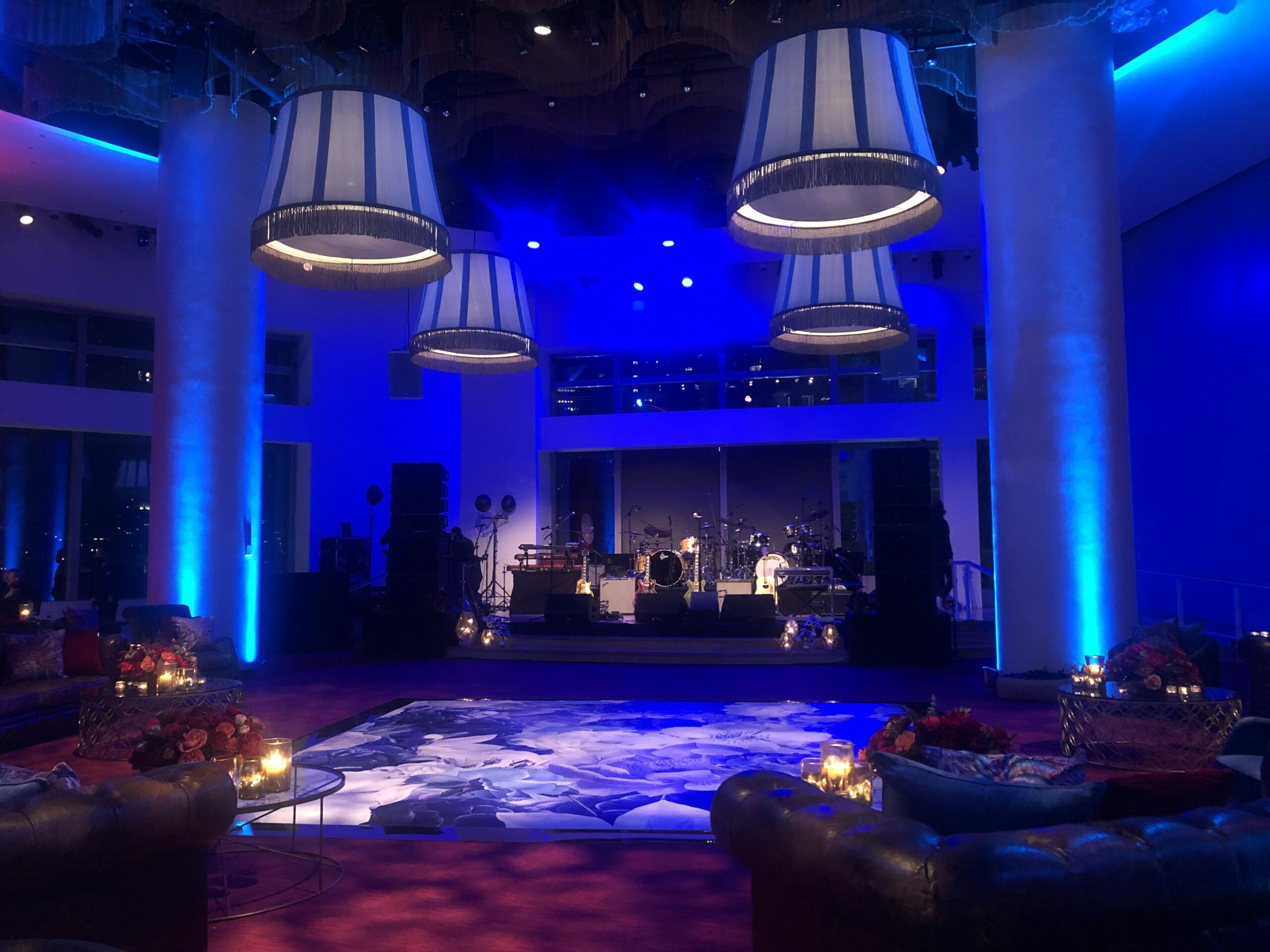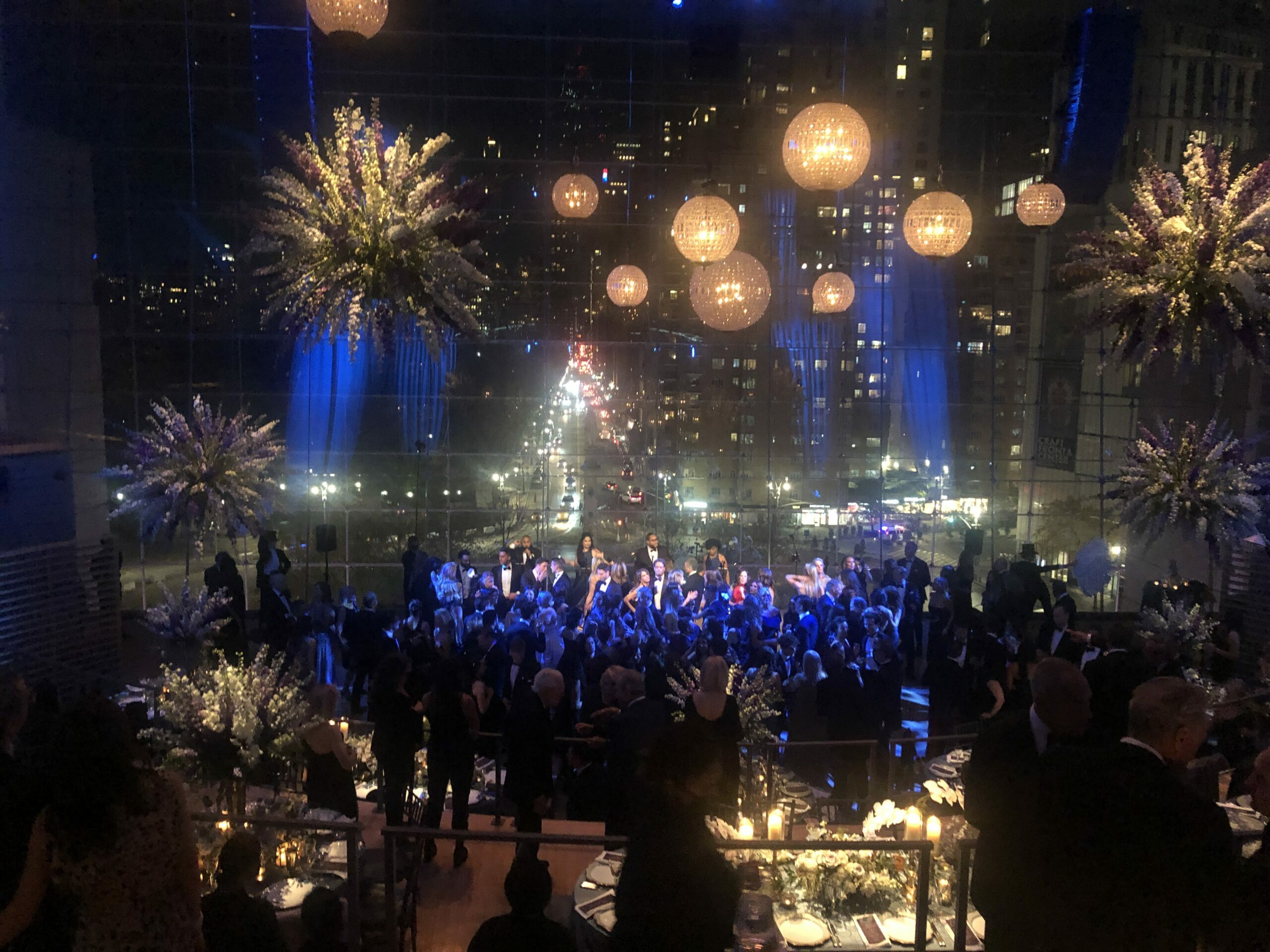 The Appel Room boasts a stage that can be configured to accommodate a seated dinner while a performance takes place on the stage below, all with dazzling views of New York City and Central Park South in the background. This provided the perfect setting for a 150-person corporate anniversary event.