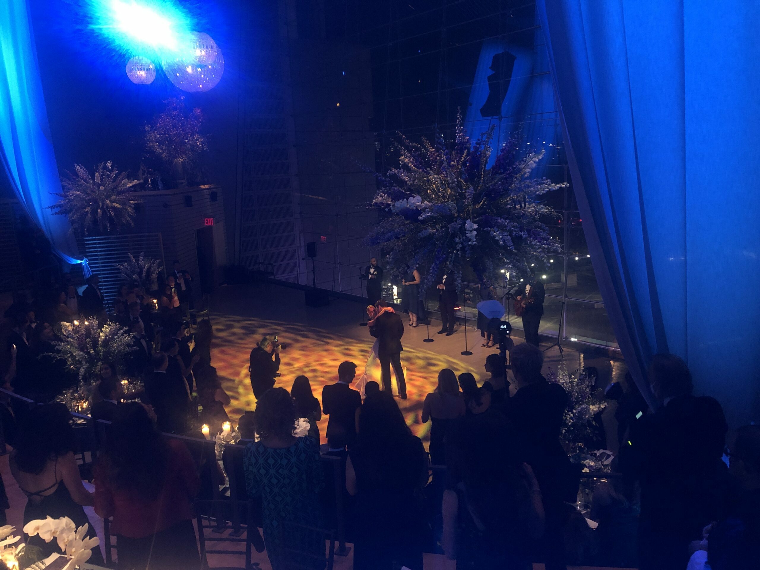 We don’t often host weddings at Jazz at Lincoln Center, but when we do, you know it’ll be spectacular. From the dazzling backdrop of New York City and Central Park South visible through the floor-to-ceiling windows in both the Ertegun Atrium and the Appel Room, to dramatic lighting and stunning florals, the 200-plus guests were captivated by the views. Add in delectable food from cocktial reception through after party, and you’ve got an event that people will remember for years to come.