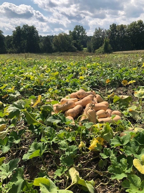 Our two most outstanding crops this year were our field tomatoes and sweet potatoes. The prior year brought endless summer rains that hampered the development of these crops substantially, but with all the heat and irrigation available this year, we had bumper crops. There were days in August that were solely dedicated picking tomatoes. Crate after crate would be filled in the warm summer sun, staining our hands and shirts greenish black from the sap of the plants. This was everything that was hoped for and even more. The sweet potato crop shared equal success. Little by little the plants grew and made a vibrant green carpet of leaves catching all of the warmth of summer, bringing it down into the earth to produce the vibrantly colored roots. Crate after crate was filled with them and stored, until our cooler could hold no more sweet potatoes.