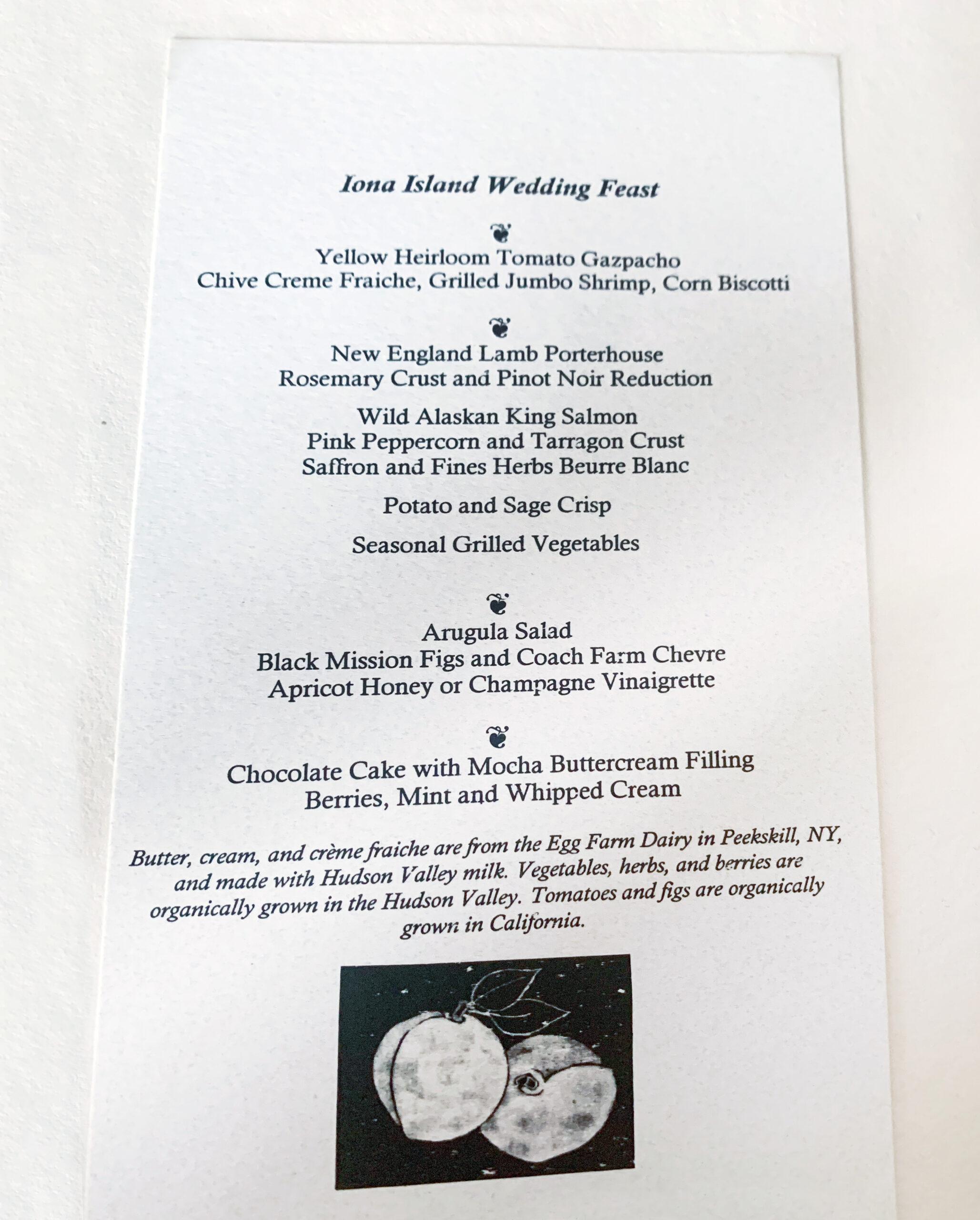 Even back then we focused on local food products, selecting as many regional ingredients as possible. These included butter, cream and cheese from the Egg Farm Dairy in Peekskill, NY and organic vegetables, herbs and berries from local farms in the Hudson Valley. The New England Lamb Porterhouse and a late-night snack of Bear Mountain Barely Blue Tear of the Clouds Wild Ripened Cheddar were stars of the evening.
